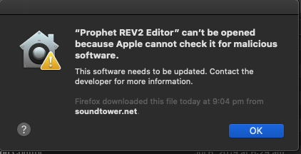 Soundtower is a member of the Apple OS X and iOS development program but there are might be still some hurdles to overcome We do not use Apple Store for download. On the first run you may see a similar warning: